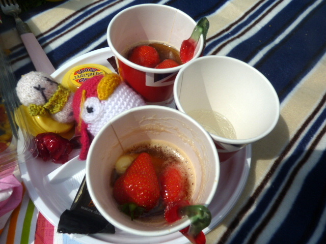 Pimms, lemonade, sweetie banana stirrers, strawberries, more sweets and - er - more sweets. I chucked a crouton into Kerri's when she wasn't looking. Posh. Very.